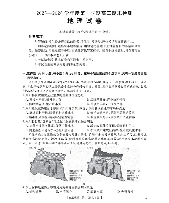 2025-2026学年度第一学期高三期末检测 地理.pdf