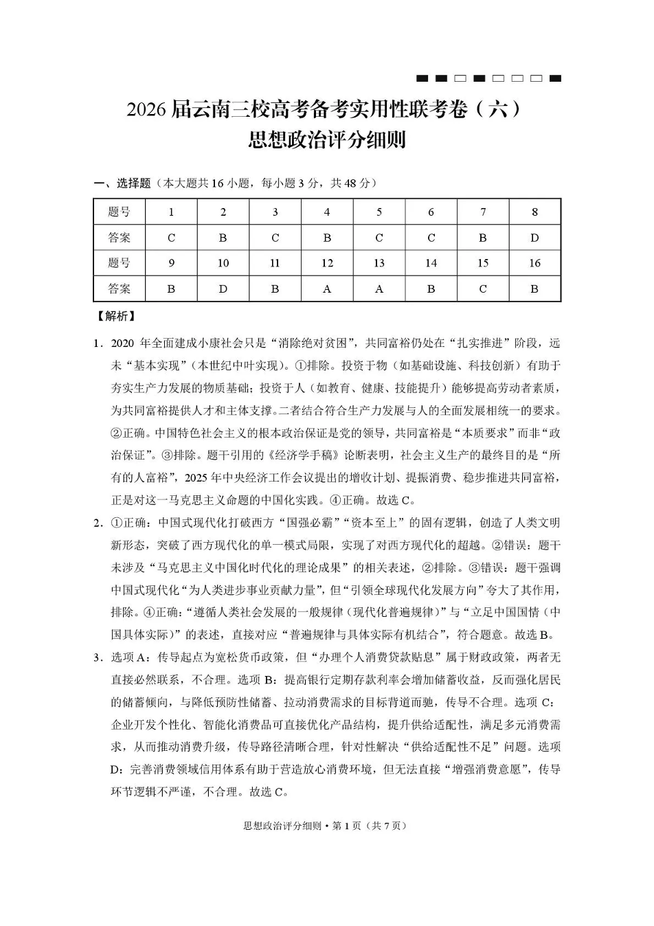 2026届云南三校高考备考实用性联考卷(六)政治答案.pdf