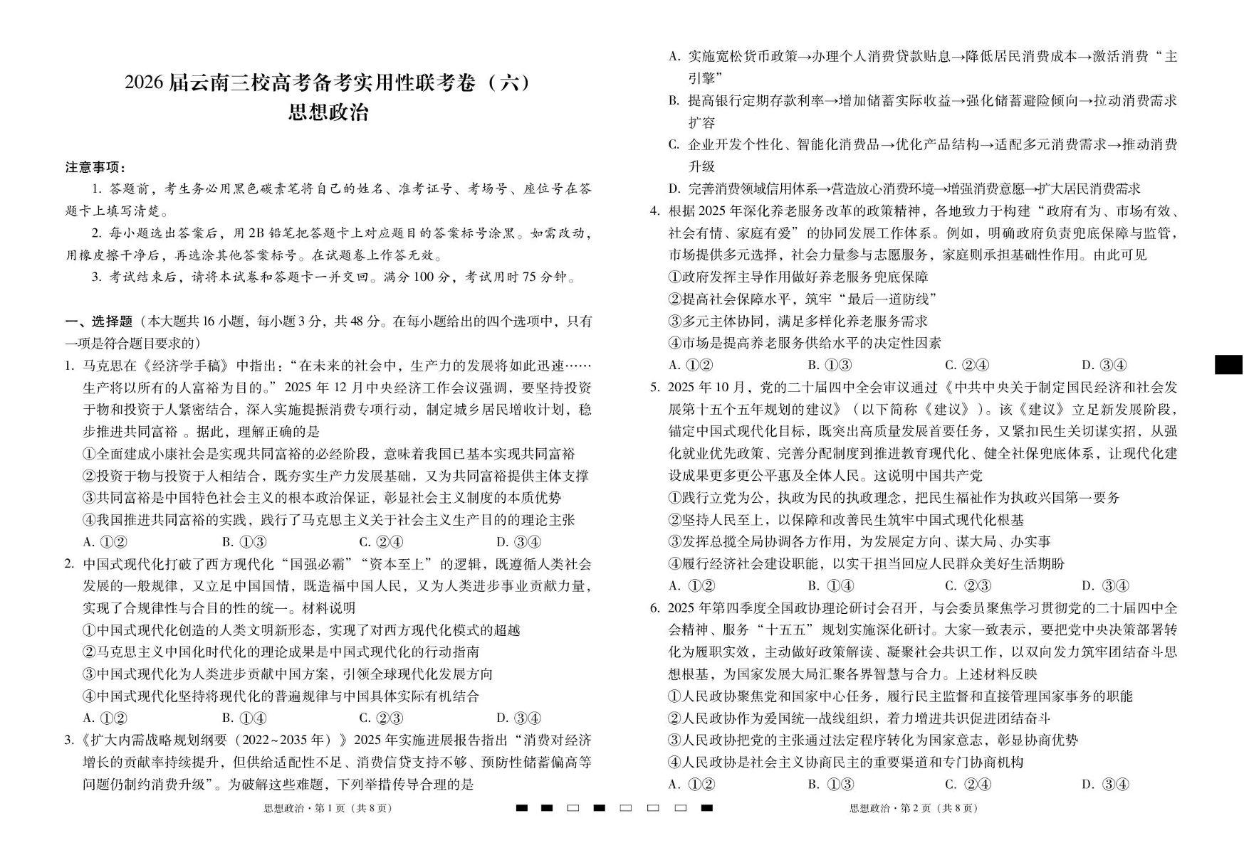 2026届云南三校高考备考实用性联考卷(六)政治.pdf
