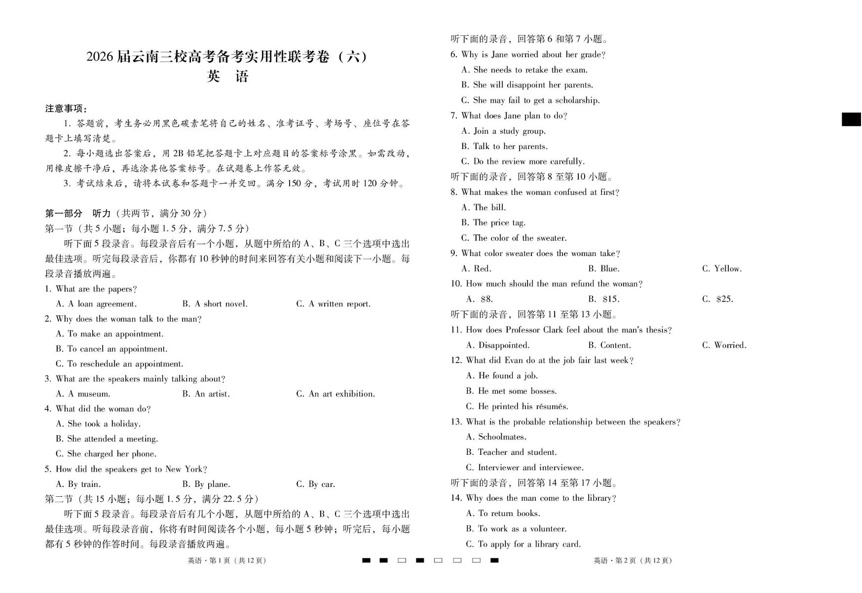 2026届云南三校高考备考实用性联考卷(六)英语.pdf