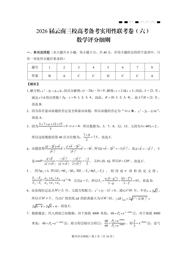 2026届云南三校高考备考实用性联考卷(六)数学答案.pdf