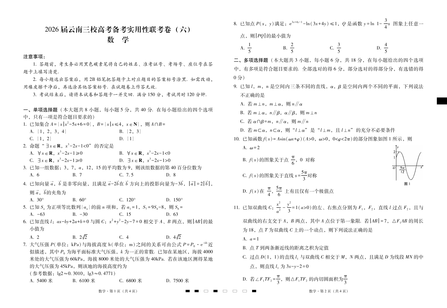 2026届云南三校高考备考实用性联考卷(六)数学.pdf