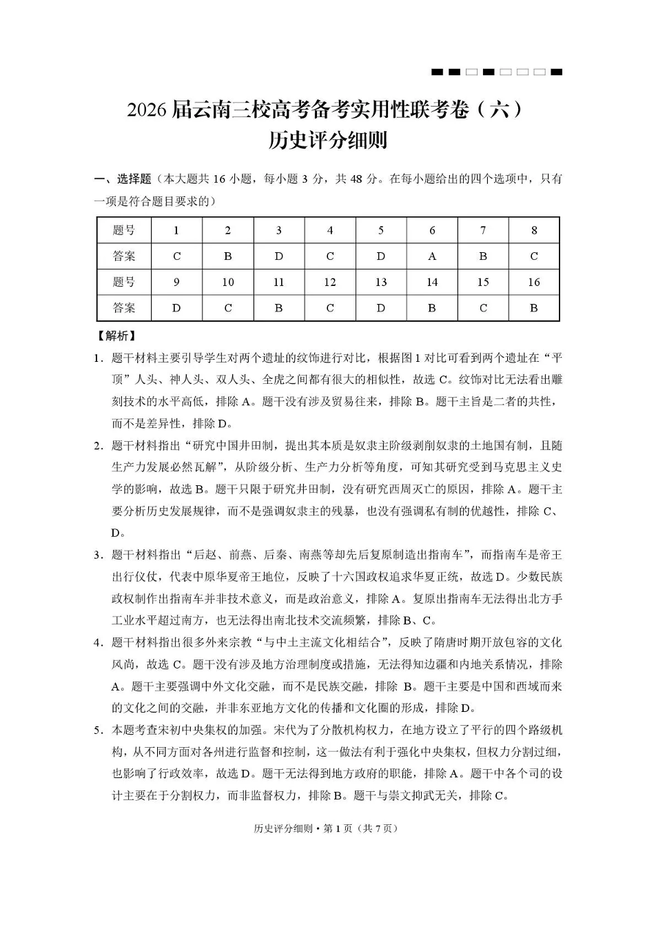 2026届云南三校高考备考实用性联考卷(六)历史答案.pdf
