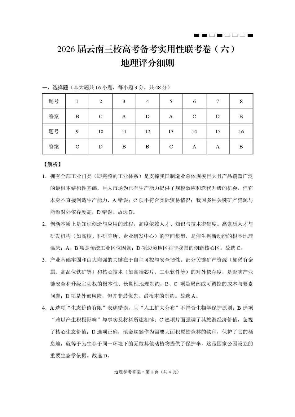 2026届云南三校高考备考实用性联考卷(六)地理答案.pdf