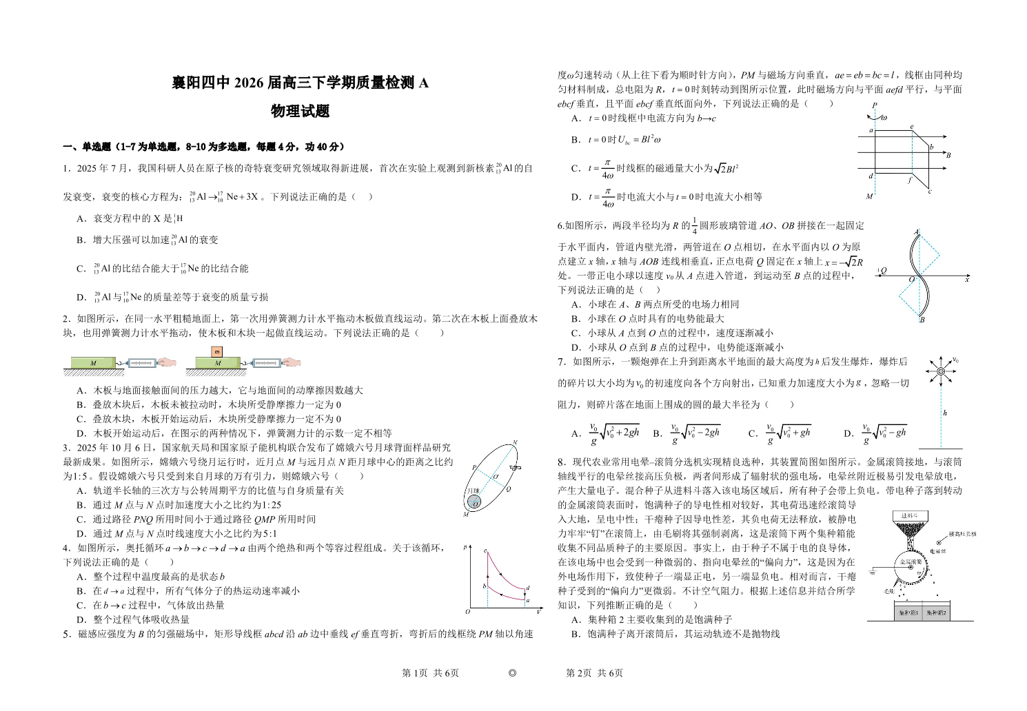 襄阳四中2026届高三下学期质量检测 物理试题(含答案).pdf