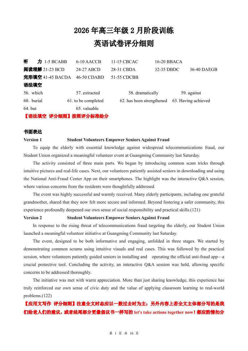湖北省云学联盟2026年高三年级2月阶段训练 英语评分细则.pdf