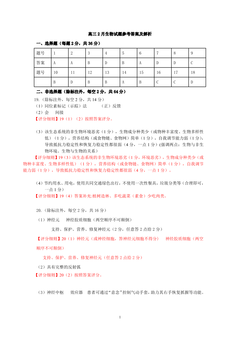 湖北省云学联盟2026年高三年级2月阶段训练 生物评分细则.pdf