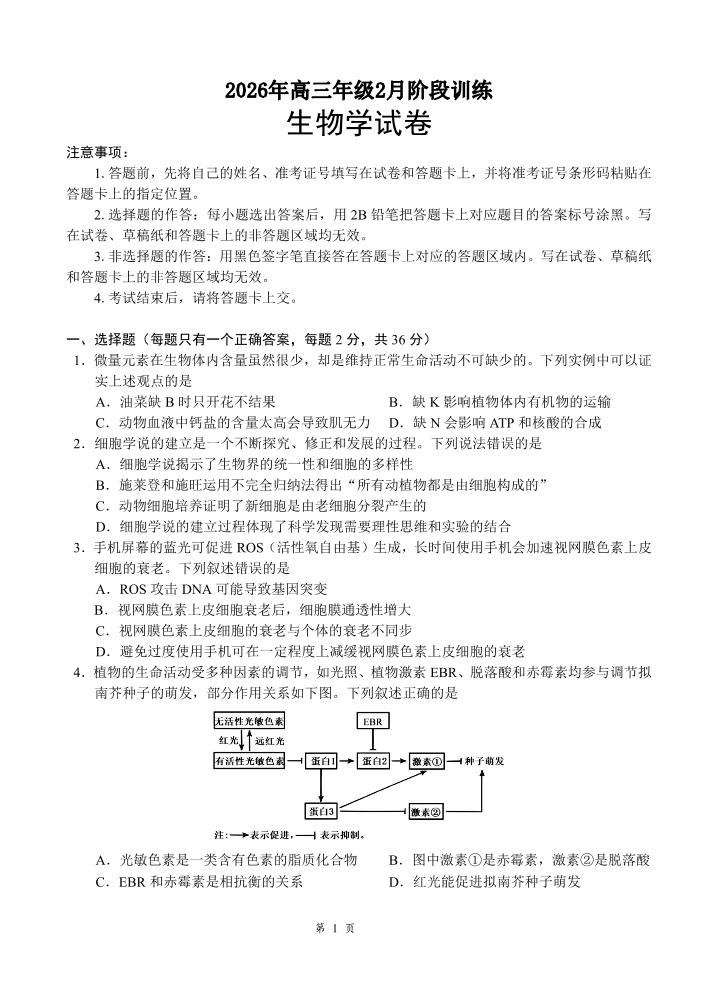 湖北省云学联盟2026年高三年级2月阶段训练 生物.pdf