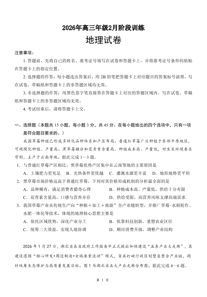 湖北省云学联盟2026年高三年级2月阶段训练 地理.pdf