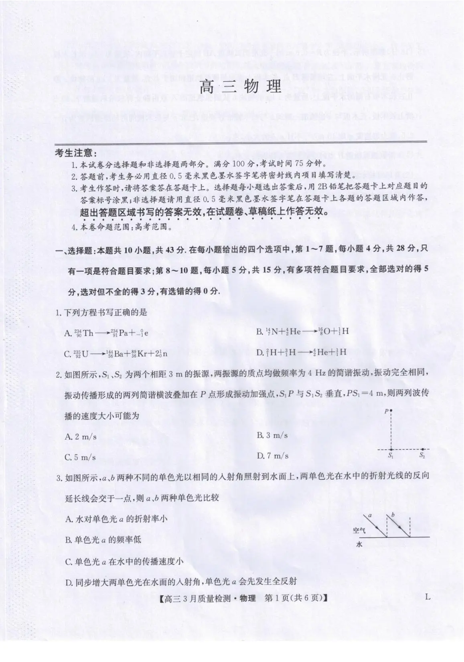 甘肃省九师联盟2026届高三下学期3月质量检测 物理.pdf
