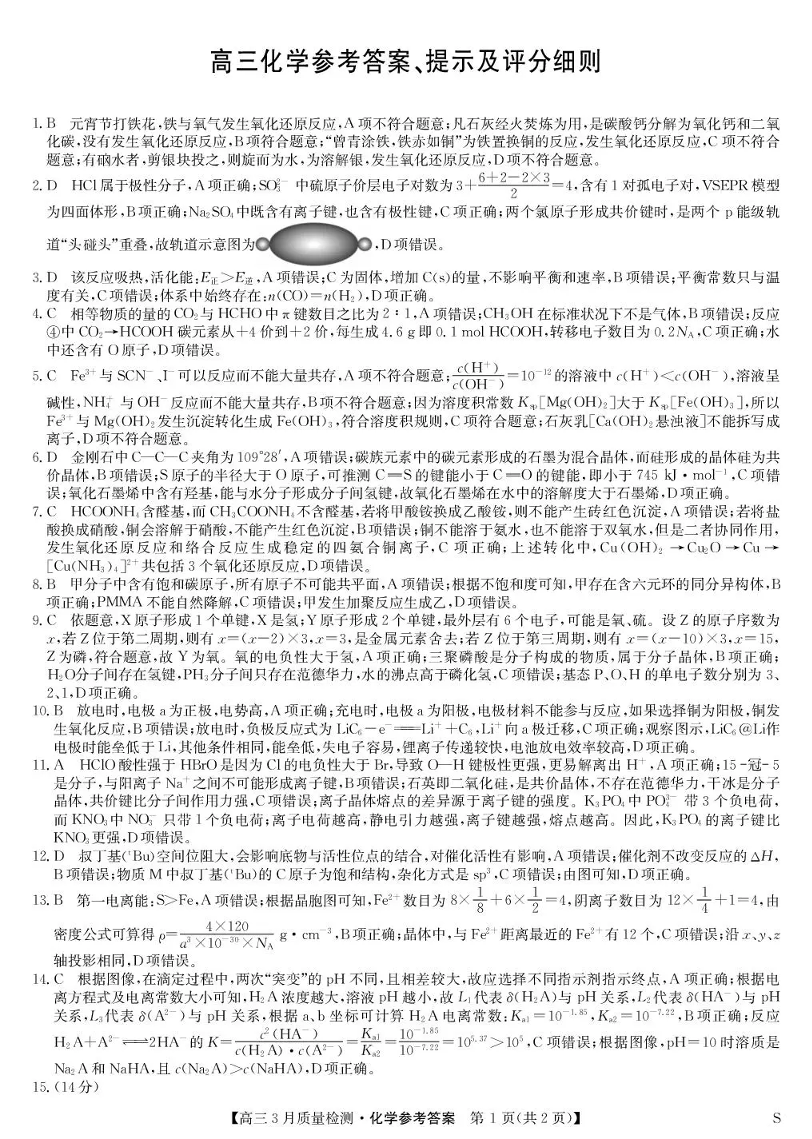 甘肃省九师联盟2026届高三下学期3月质量检测 化学答案.pdf