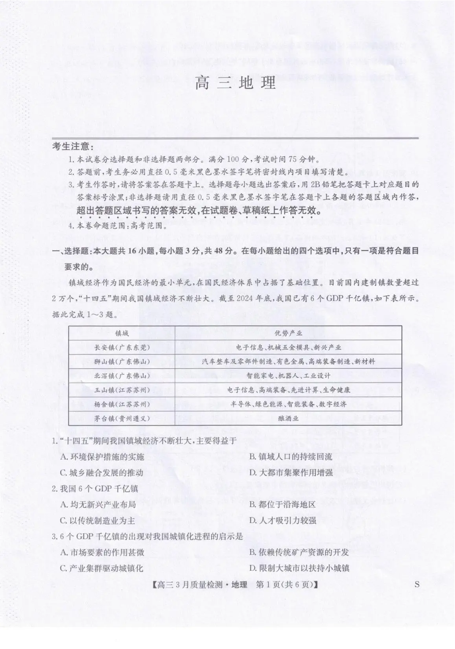 甘肃省九师联盟2026届高三下学期3月质量检测 地理.pdf
