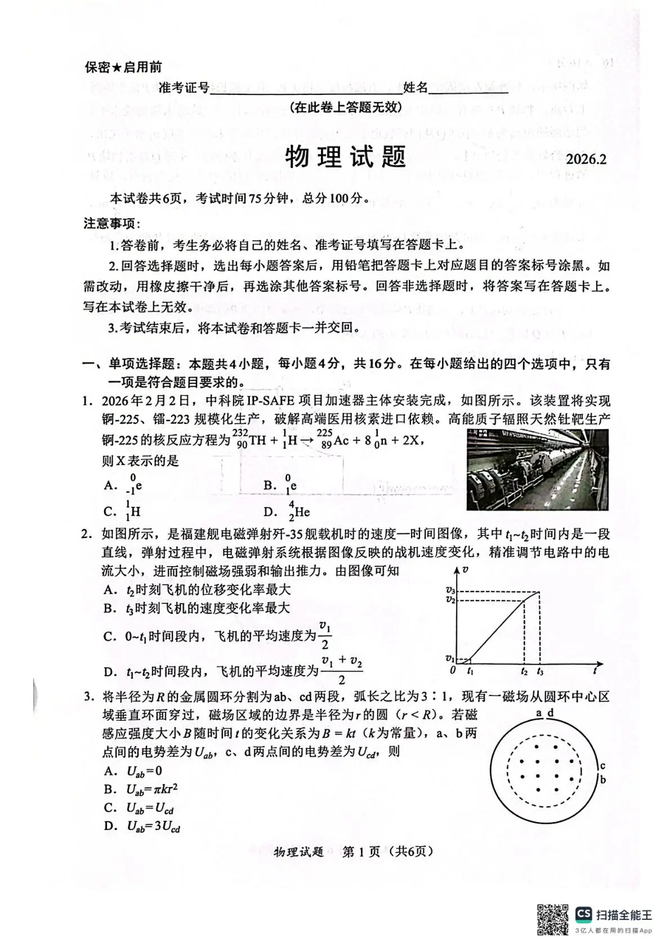 福建省名校联盟2026届高三下学期开学考试 物理.pdf
