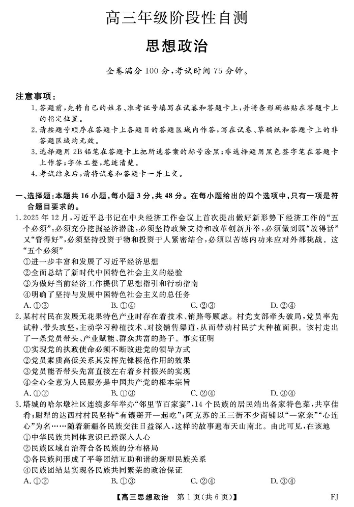 福建2025-2026学年高三年级下学期开学阶段性自测 政治.pdf