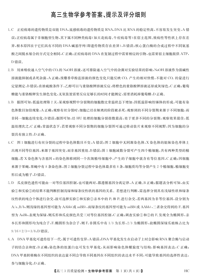 黑吉辽蒙九师联盟2026届高三下学期3月质量检测 生物答案.pdf