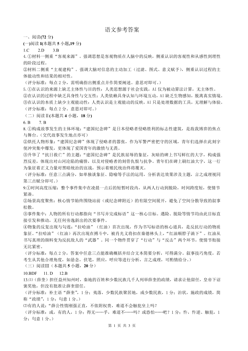 哈尔滨市第一中学、第六中学2026年2月高三零模模拟考试 语文答案.pdf