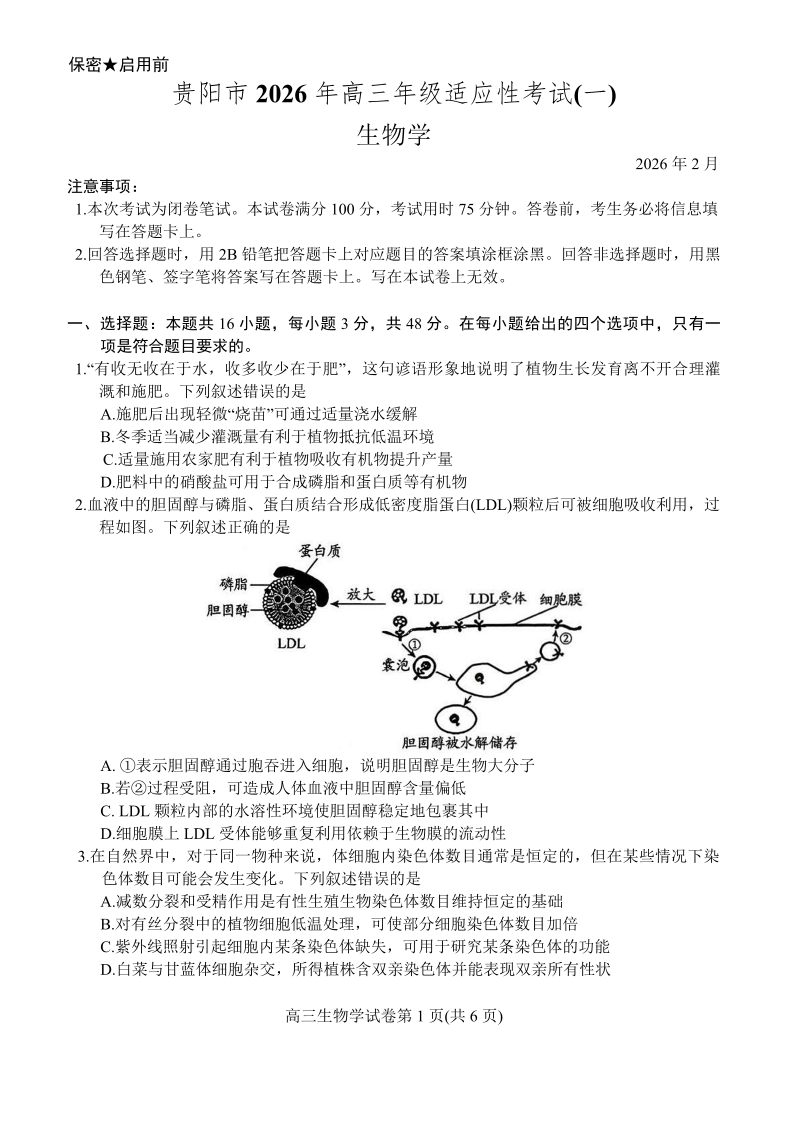 贵阳市2026年高三年级适应性考试(一)生物.pdf