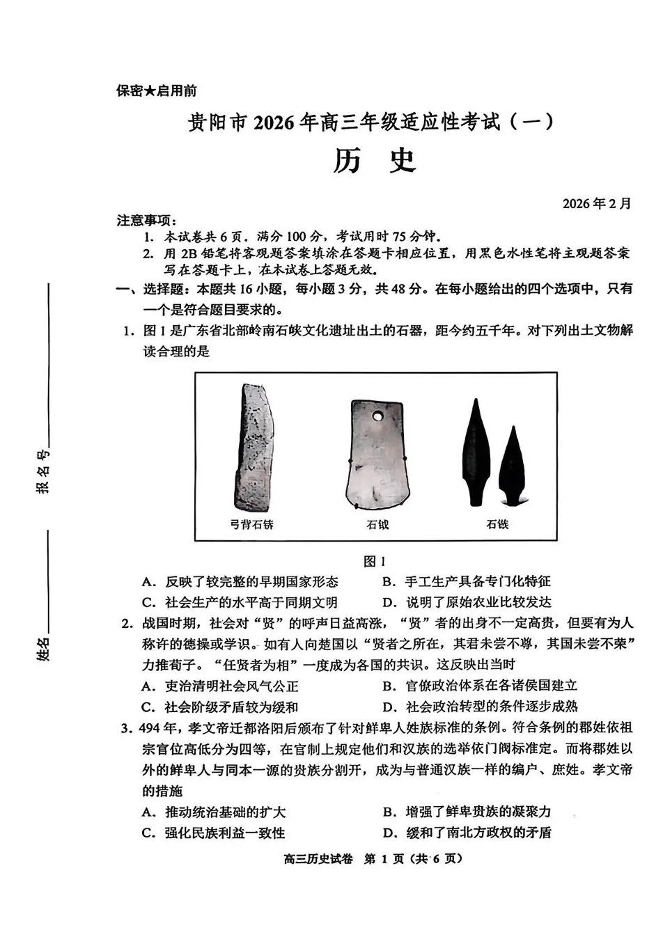 贵阳市2026年高三年级适应性考试(一)历史.pdf