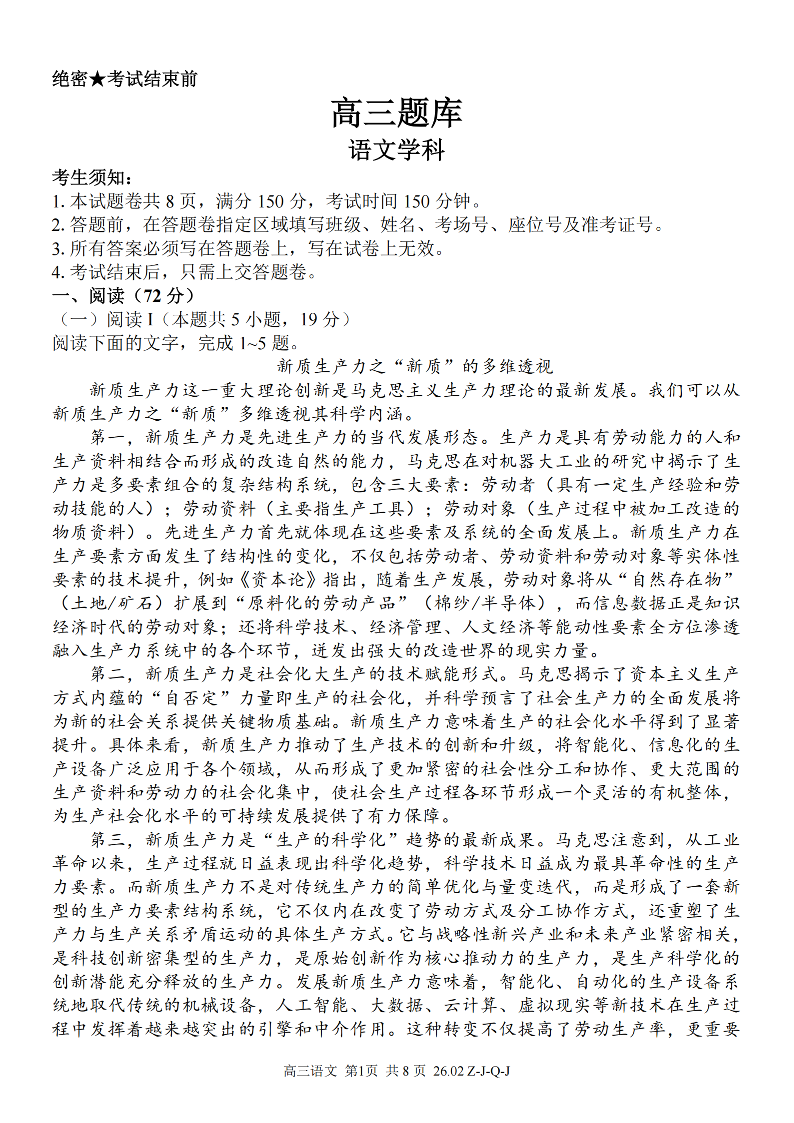浙江省(浙南名校、七彩阳光、精诚联盟、金兰教育)2026年2月题库 语文.pdf