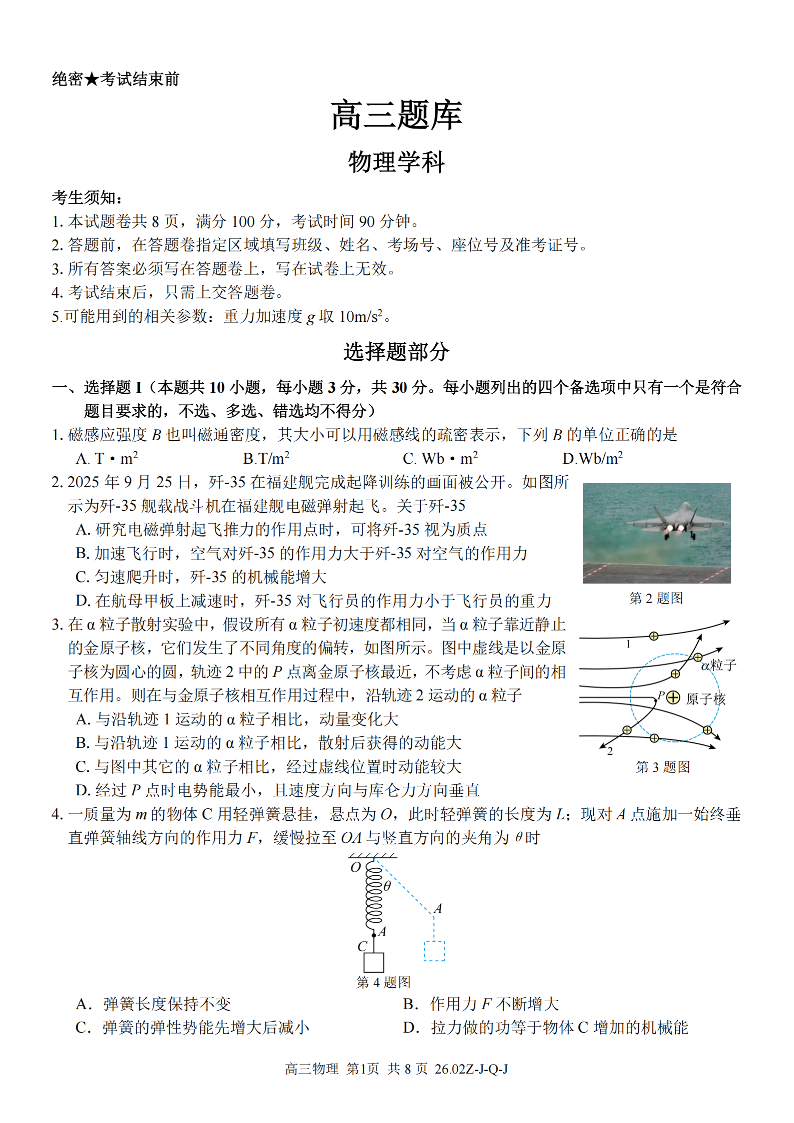 浙江省(浙南名校、七彩阳光、精诚联盟、金兰教育)2026年2月题库 物理.pdf