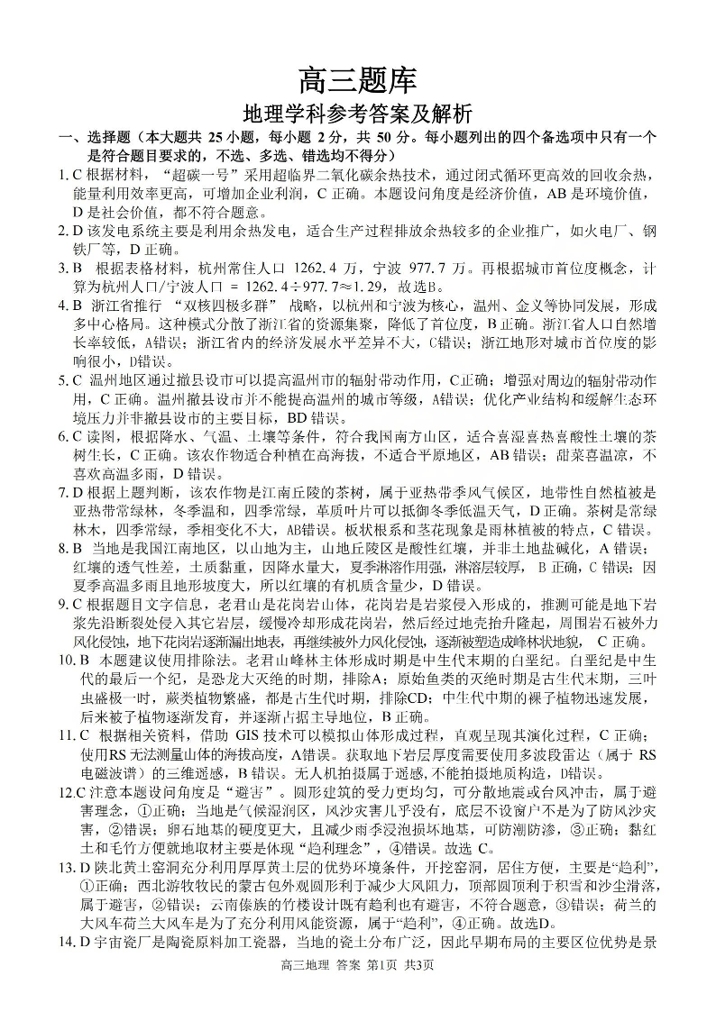 浙江省(浙南名校、七彩阳光、精诚联盟、金兰教育)2026年2月题库 地理答案.pdf