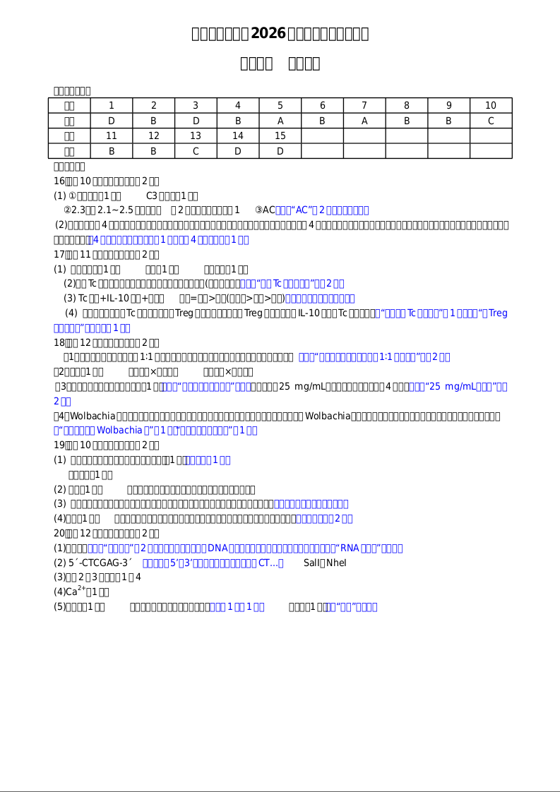重庆育才中学高2026届高三(下)入学考试 生物答案.docx