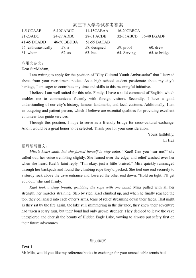 重庆市第八中学校2025-2026学年度(下)高三年级入学考试 英语答案.pdf