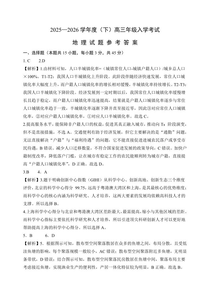 重庆市第八中学校2025-2026学年度(下)高三年级入学考试 地理答案.pdf