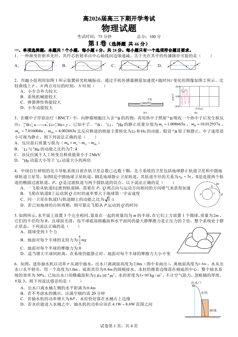 成都市第七中学2025—2026学年度下期高2026届开学考试 物理.pdf