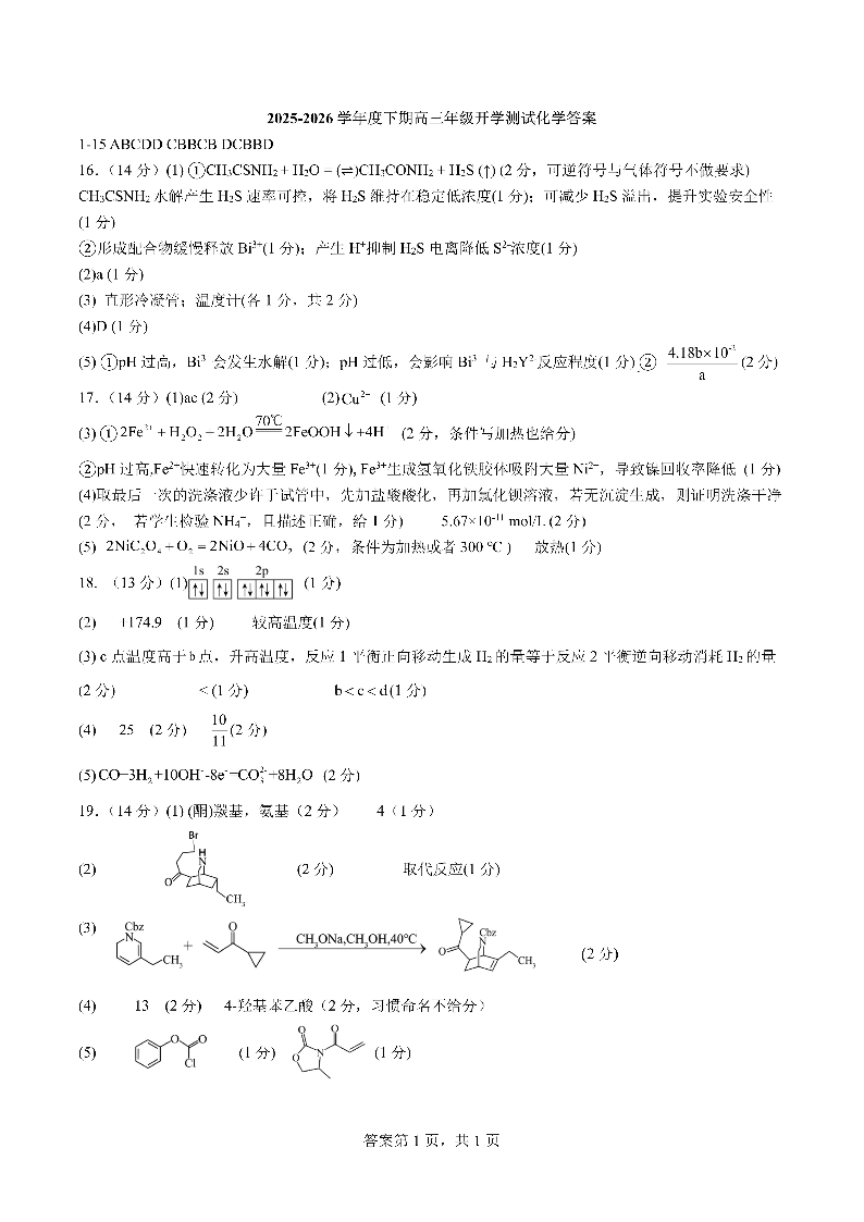 成都市第七中学2025—2026学年度下期高2026届开学考试 化学答案.pdf