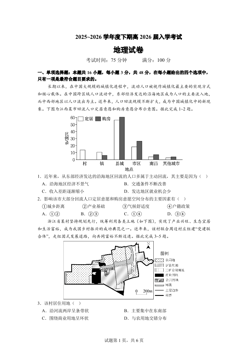 成都市第七中学2025—2026学年度下期高2026届开学考试 地理.pdf