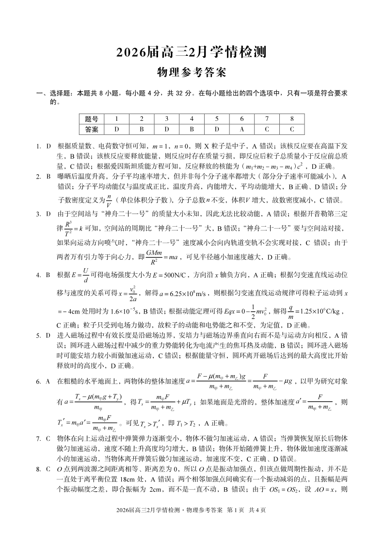 安徽省·A10联盟2026届高三下学期2月学情检测 物理答案.pdf