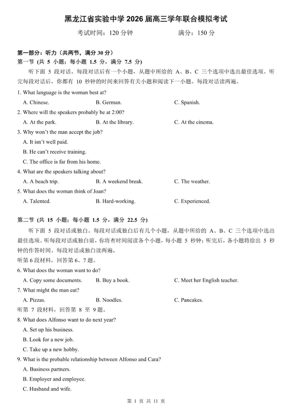 黑龙江省实验中学2026届高三学年联合模拟考试 英语.pdf
