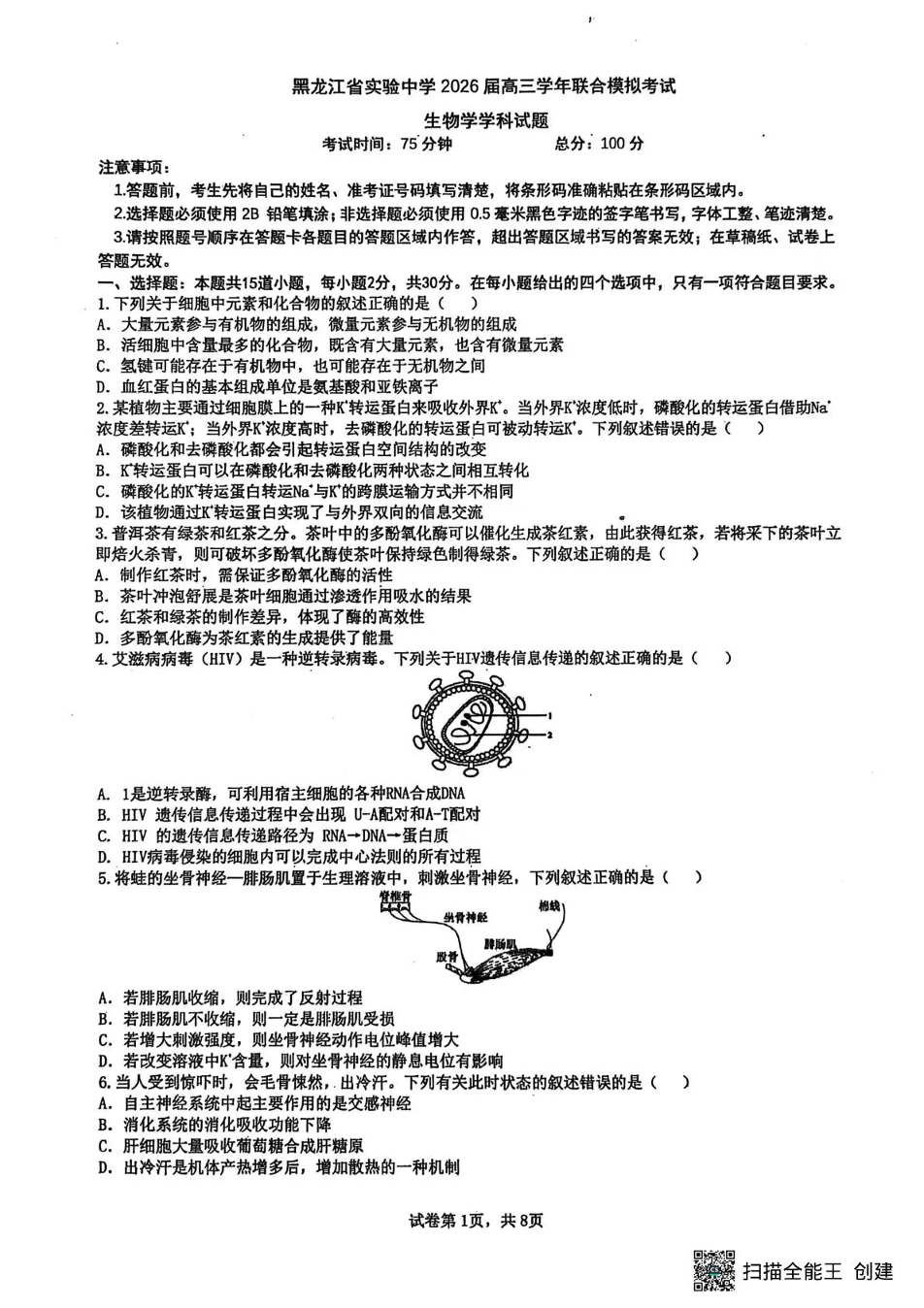 黑龙江省实验中学2026届高三学年联合模拟考试 生物.pdf