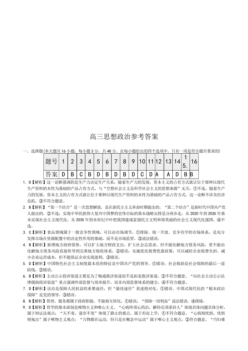 湖南长沙市雅礼中学2025-2026学年高三下学期开学考 政治答案.pdf