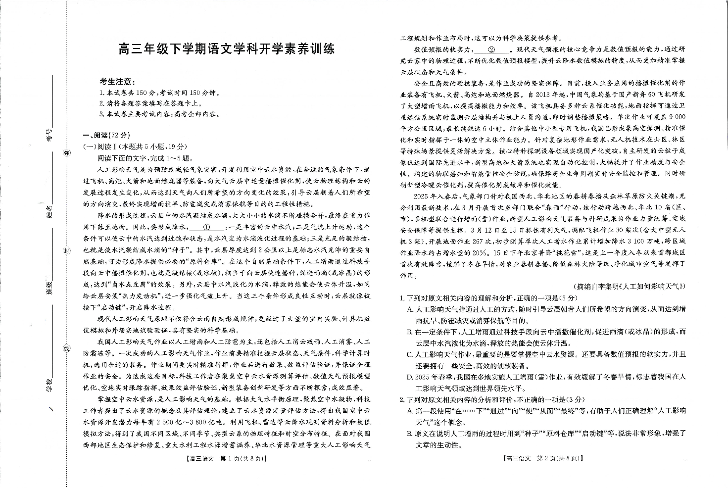 江西省2025-2026学年高三下学期2月开学素养训练 语文.pdf