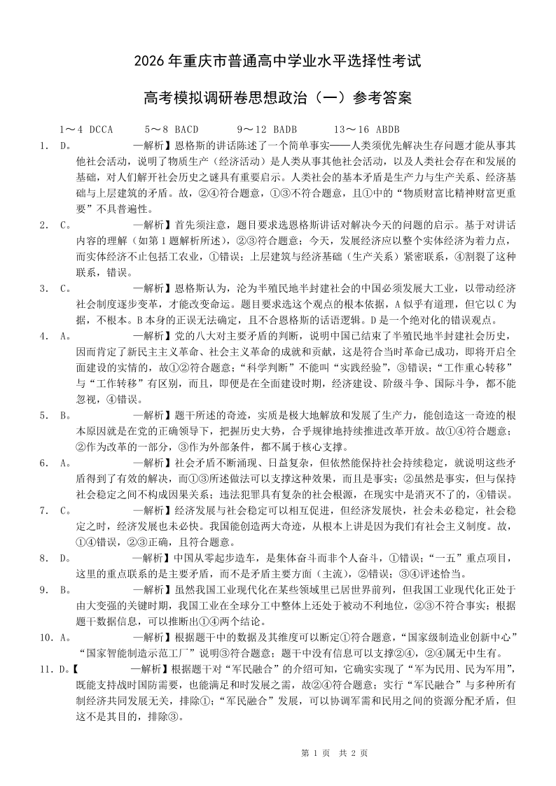 重庆西南大学附中高2026届高三下3月定时检测 政治答案.pdf