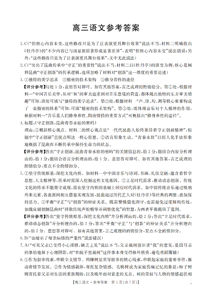 云南省2026届高三上学期2月期末联考 语文答案.pdf