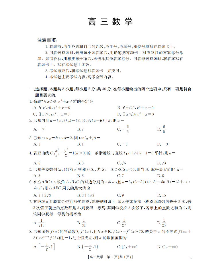 云南省2026届高三上学期2月期末联考 数学.pdf