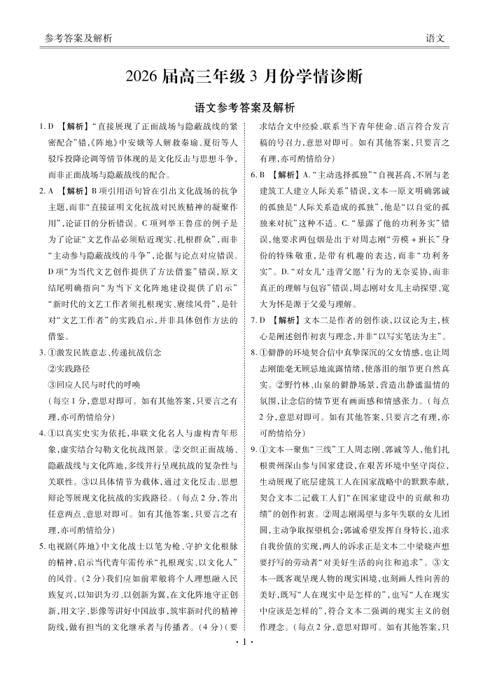 广东省衡水金卷2026届高三年级3月份学情诊断 语文答案.pdf