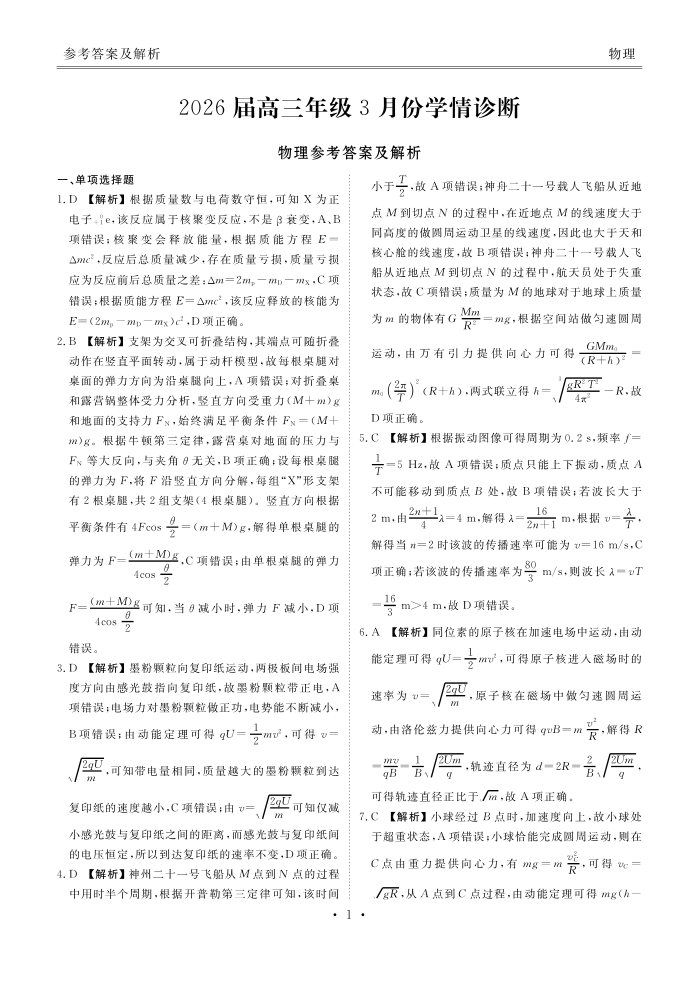 广东省衡水金卷2026届高三年级3月份学情诊断 物理答案.pdf