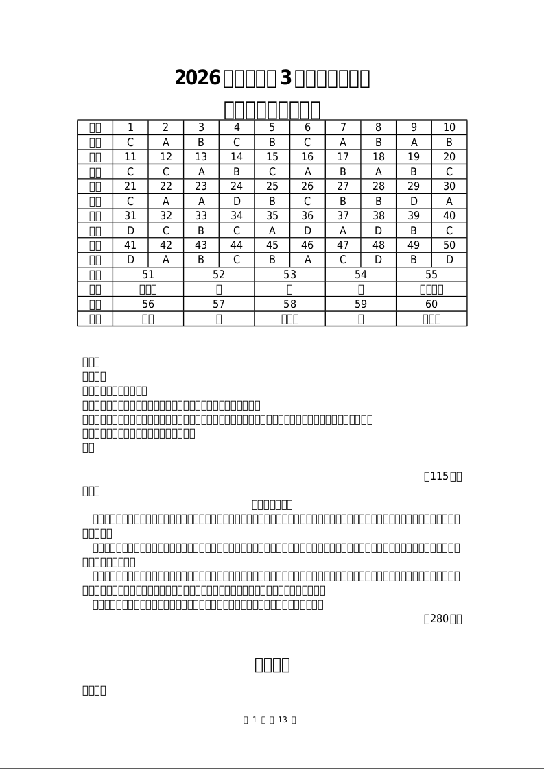 广东省衡水金卷2026届高三年级3月份学情诊断 日语答案及解析.docx