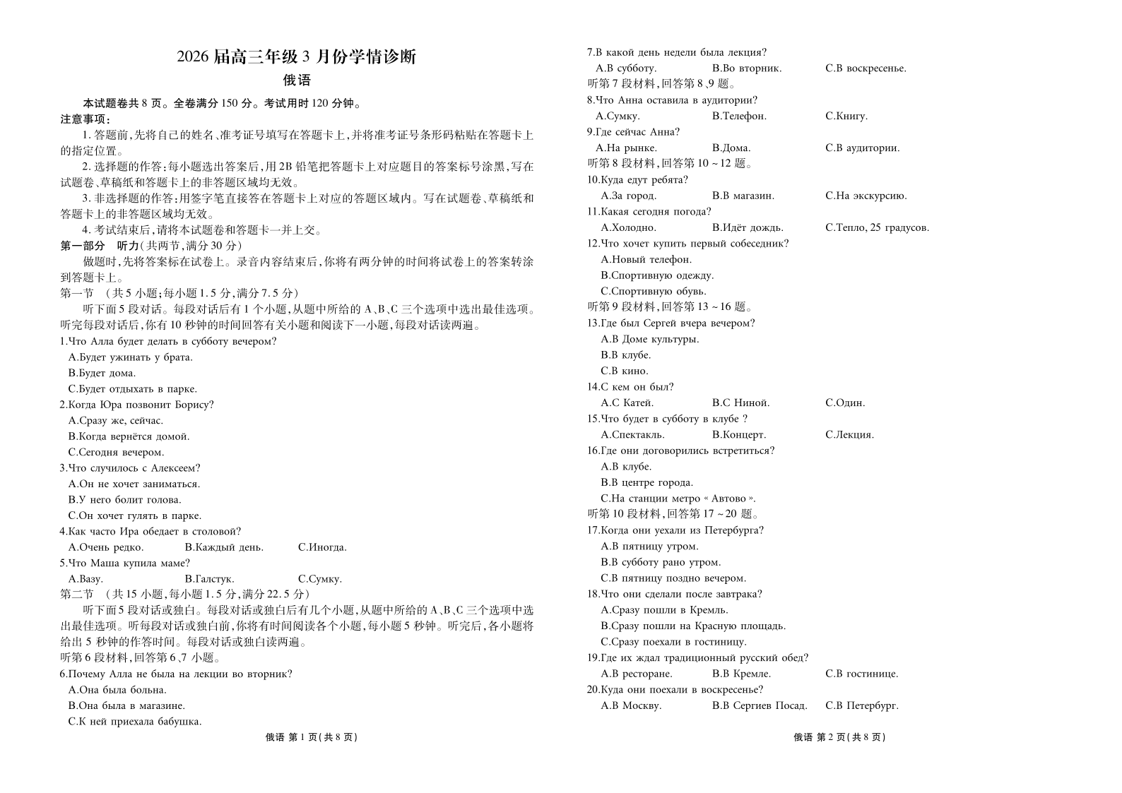 广东省衡水金卷2026届高三年级3月份学情诊断 俄语.pdf