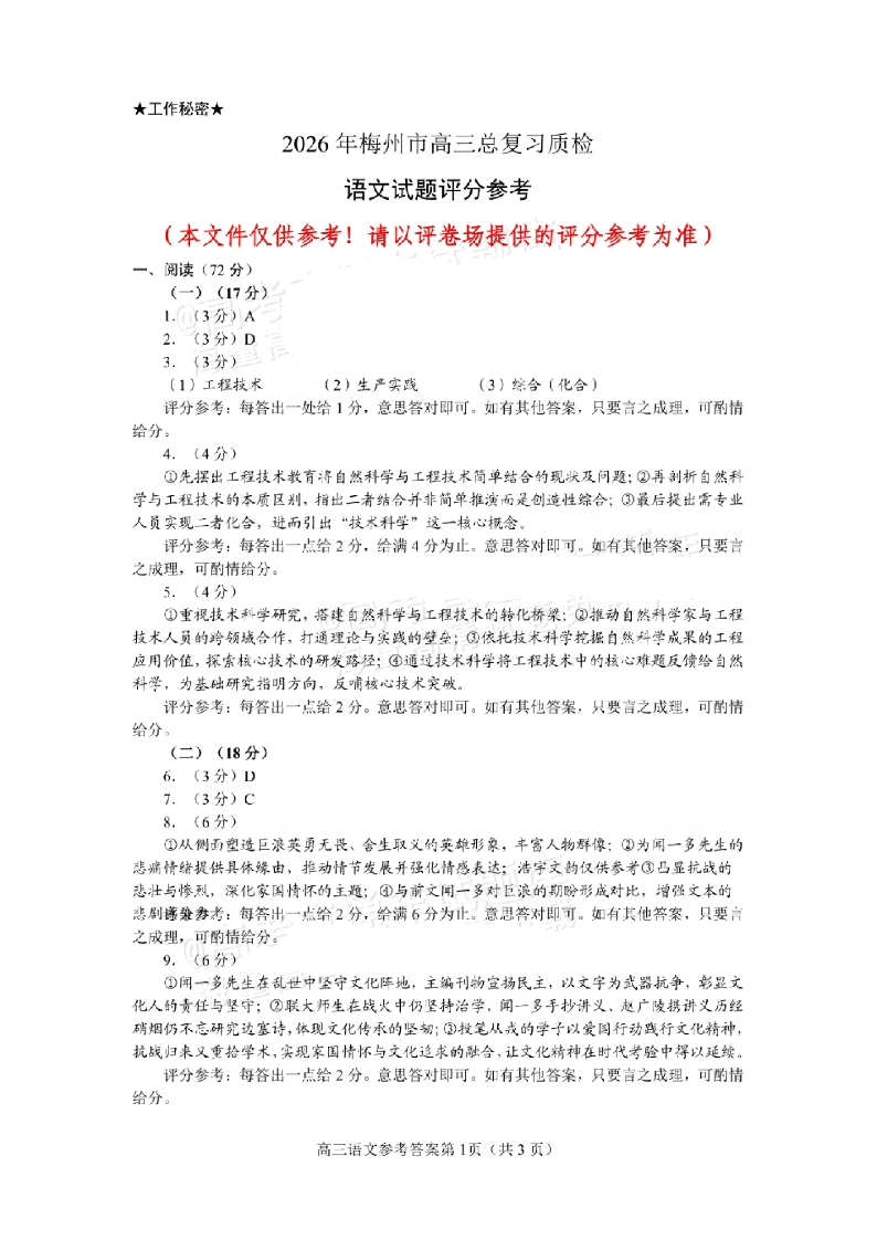 广东省梅州市高三总复习质检试卷(2026.3)语文答案.pdf