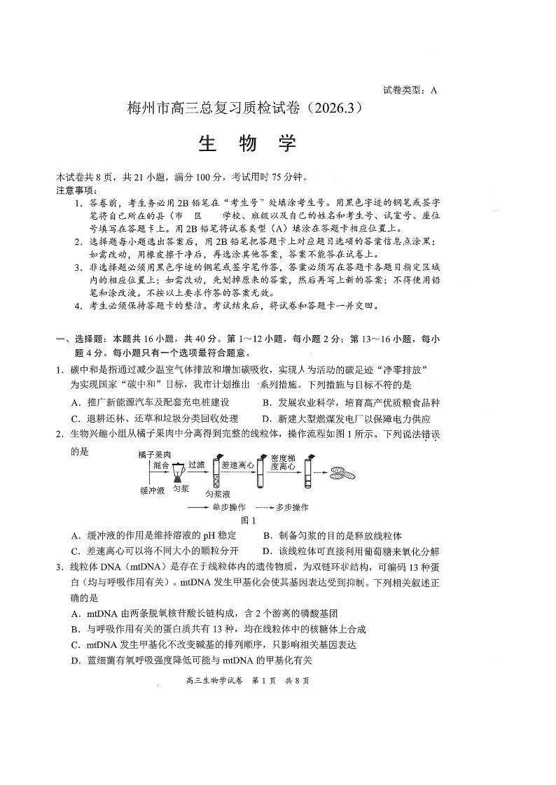 广东省梅州市高三总复习质检试卷(2026.3)生物.pdf