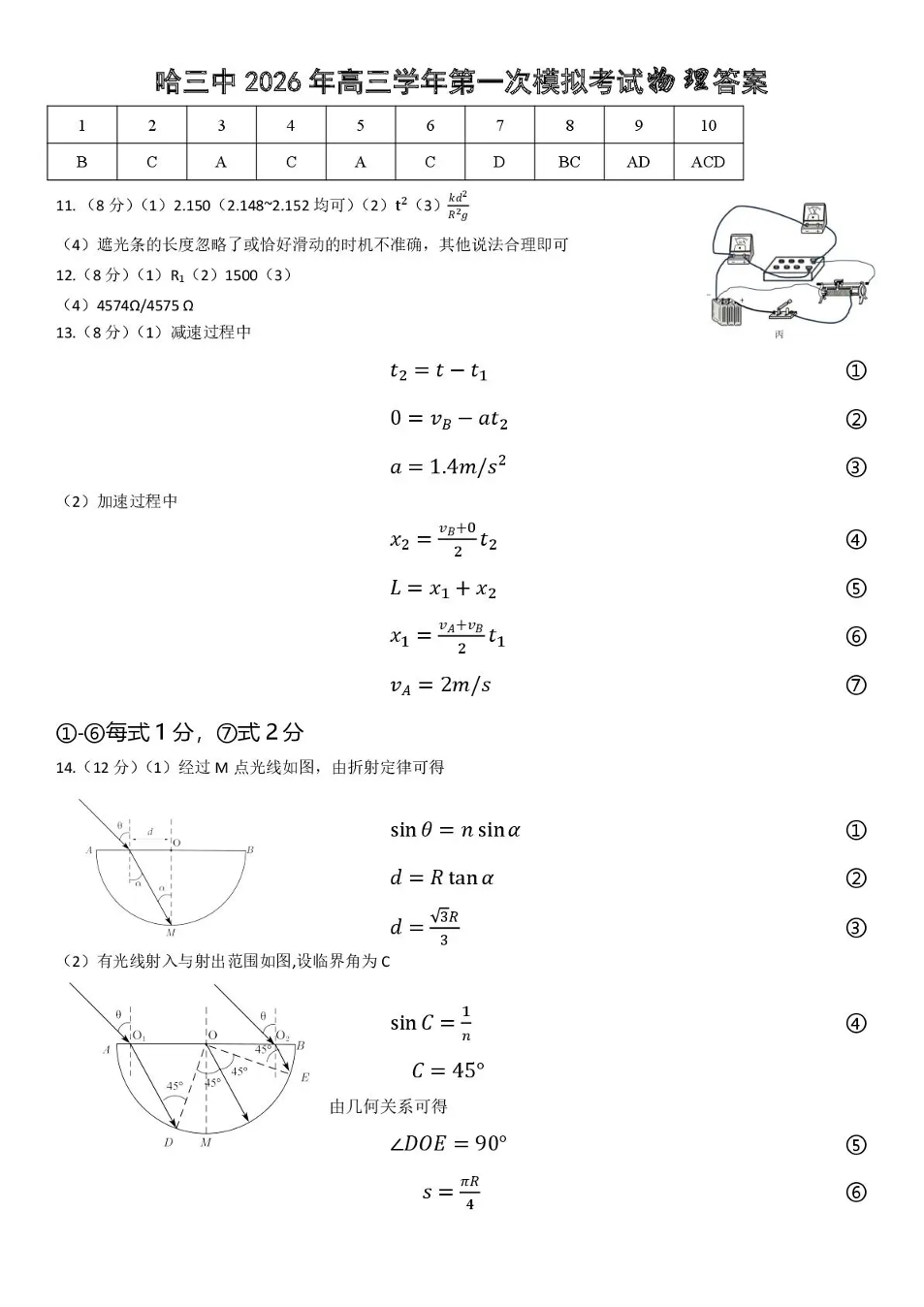 哈三中2026年高三学年第一次模拟考试 物理答案.pdf