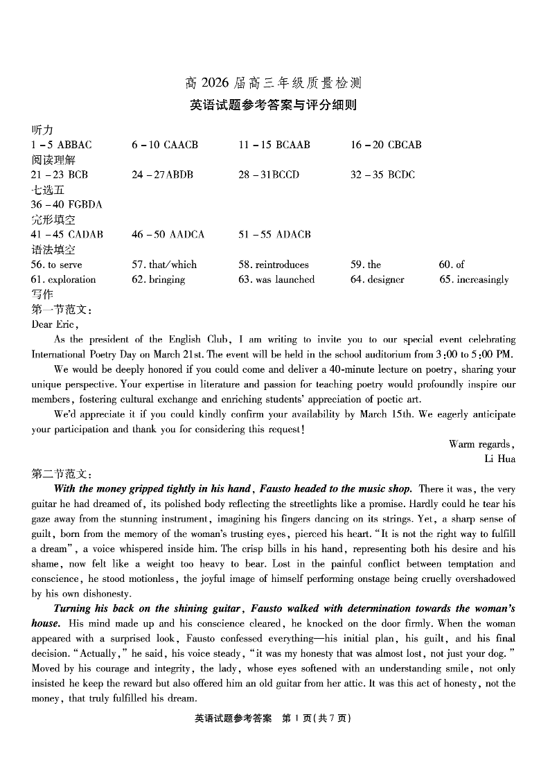 重庆市南开中学高2026届高三第六次质量检测 英语答案.pdf