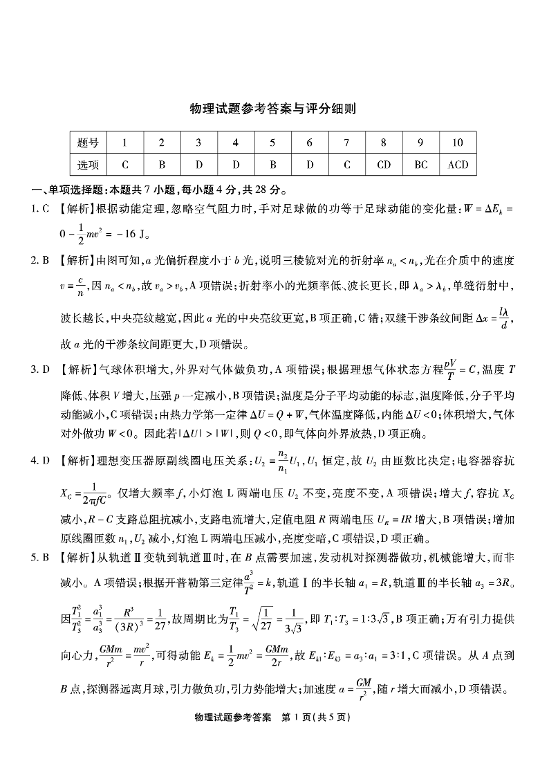 重庆市南开中学高2026届高三第六次质量检测 物理答案.pdf