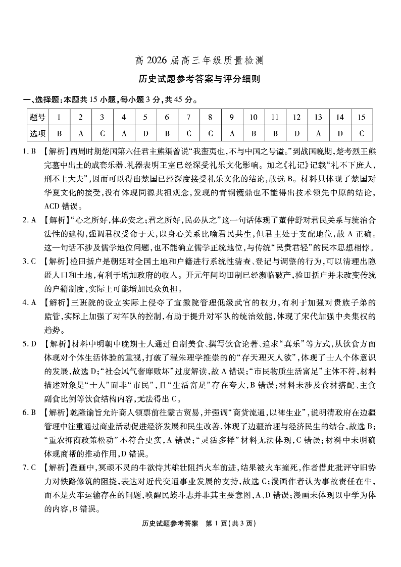 重庆市南开中学高2026届高三第六次质量检测 历史答案.pdf
