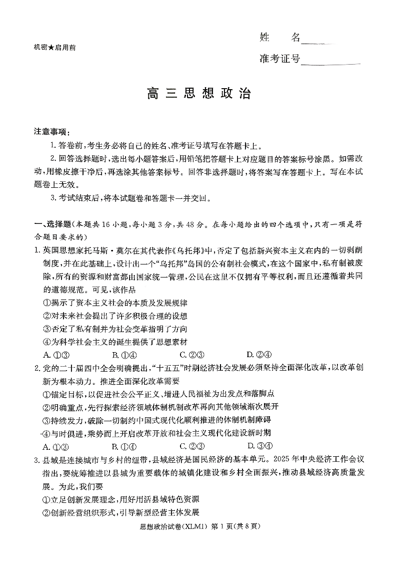 (长郡二十校)高三下学期3月第一次(二模)联考 政治.pdf